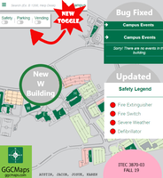 GGC Maps is a progressive web application designed to help students locate rooms in the various buildings on GGC’s campus from their computer or mobile device - with or without an internet connection. New features: building W mapped (only the C3 portion and not the newly constructed wing). Safety toggle fixed and in working condition with a legend display.
